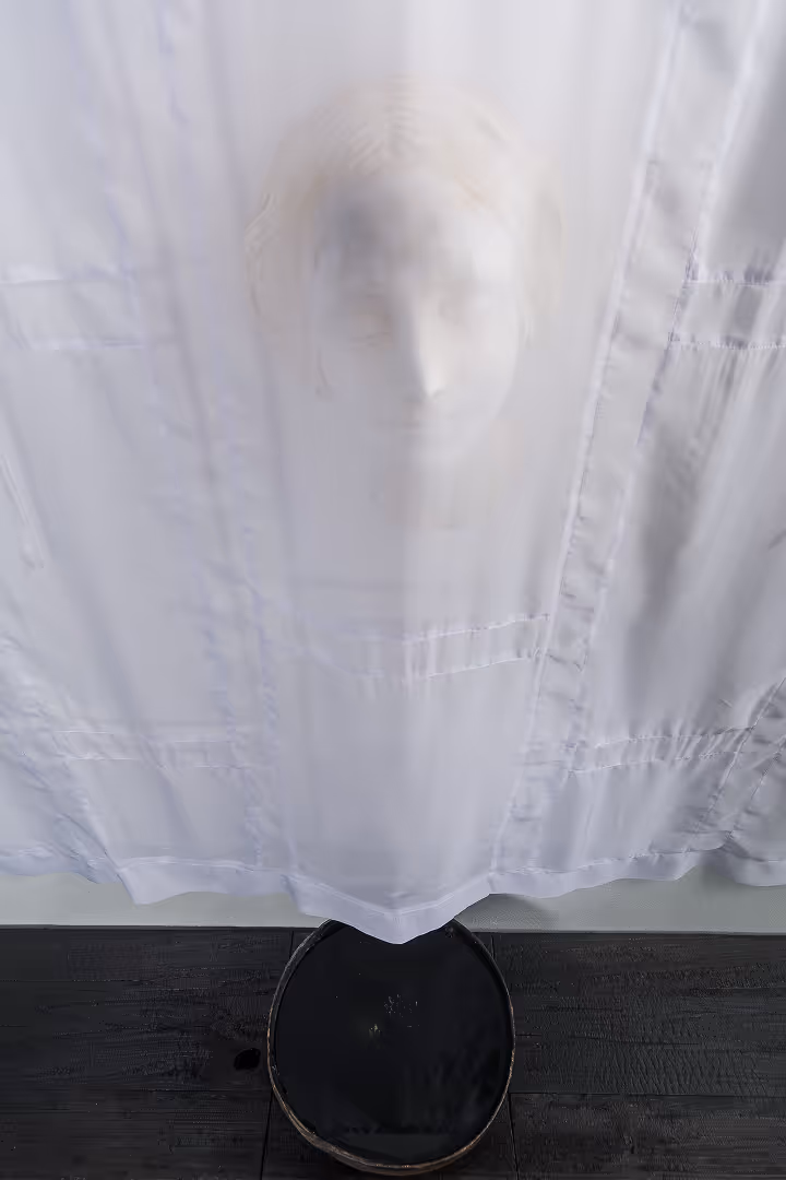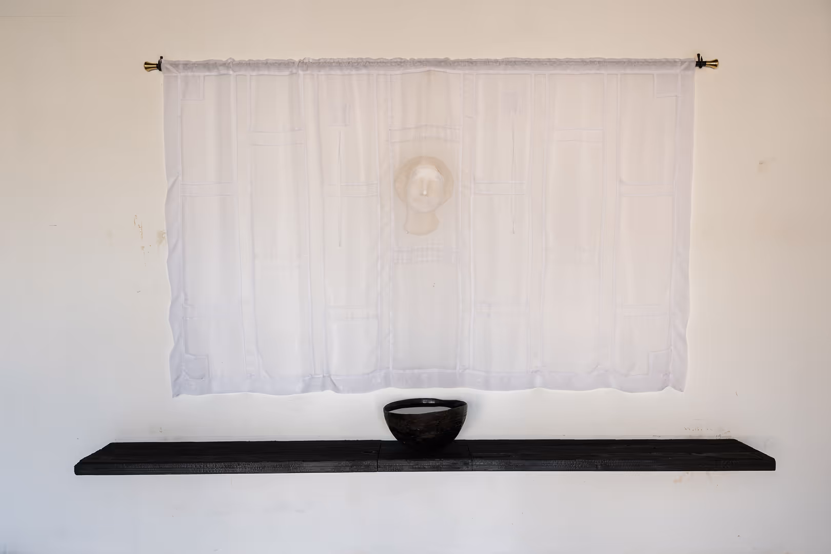 Medium:Fabric, plaster, burnt Japanese cedar, brass, sea water, Kesa 215cm/130cm