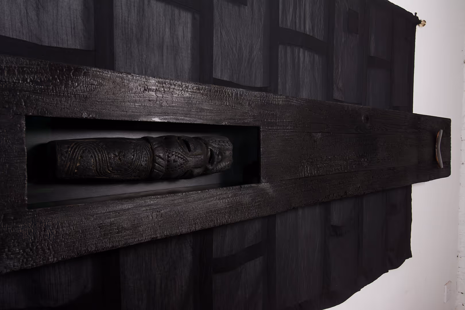 Medium:Fabric, burnt Japanese cedar, brass